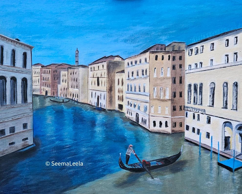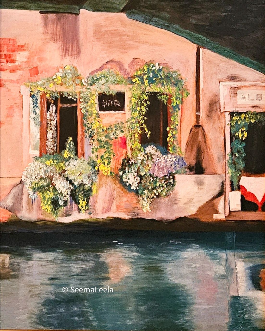 Venice Amore; Oil on canvas; Framed 16 H x 20 W inches; Price = $1275